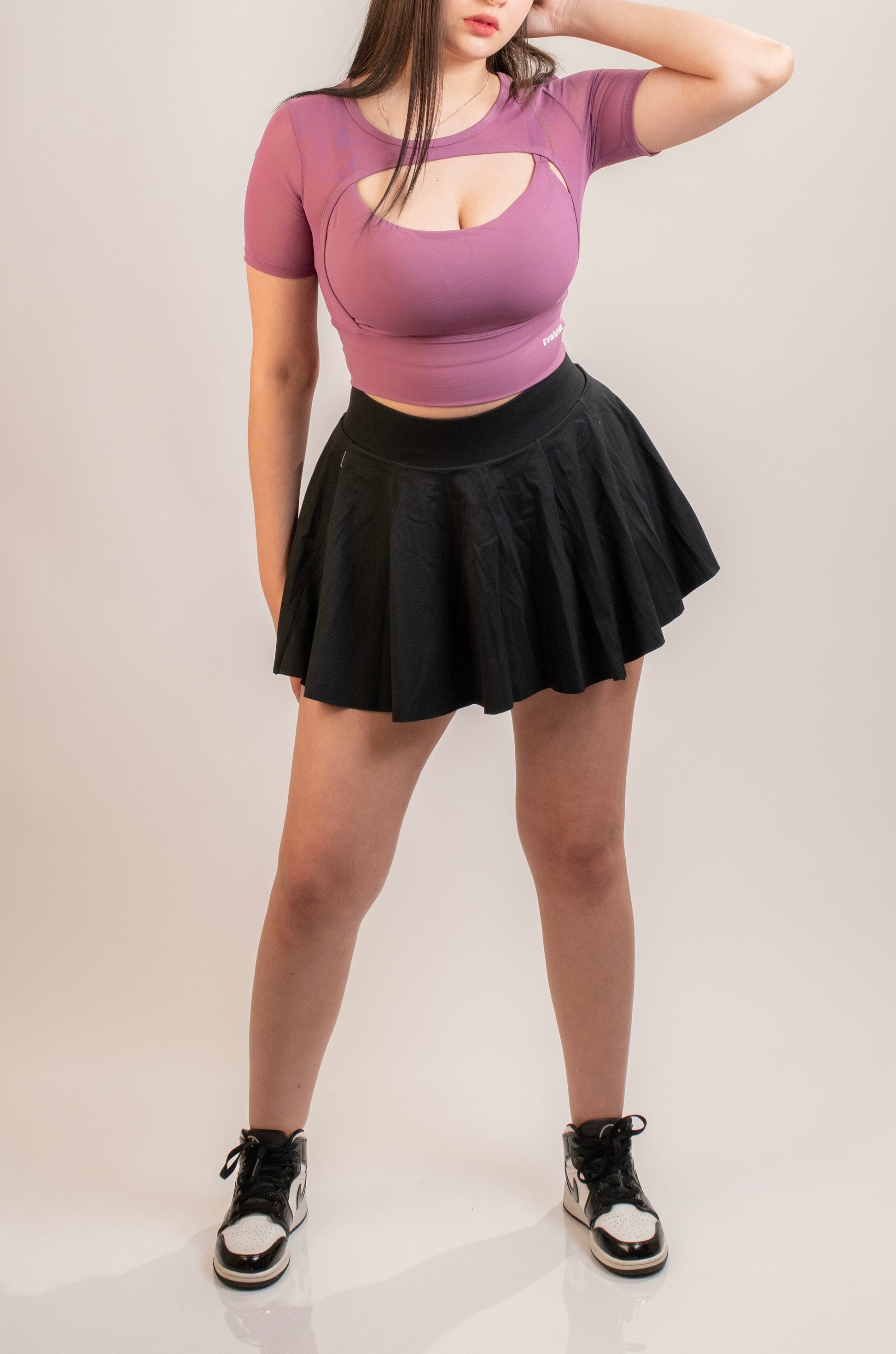 ¡Realza tu figura con nuestra falda de pretina ancha! Su efecto visual de reducir la cintura te hará lucir increíble. Además, cuenta con un short incorporado con bolsillo, ¡haciéndola tu mejor aliada para cualquier ocasión!