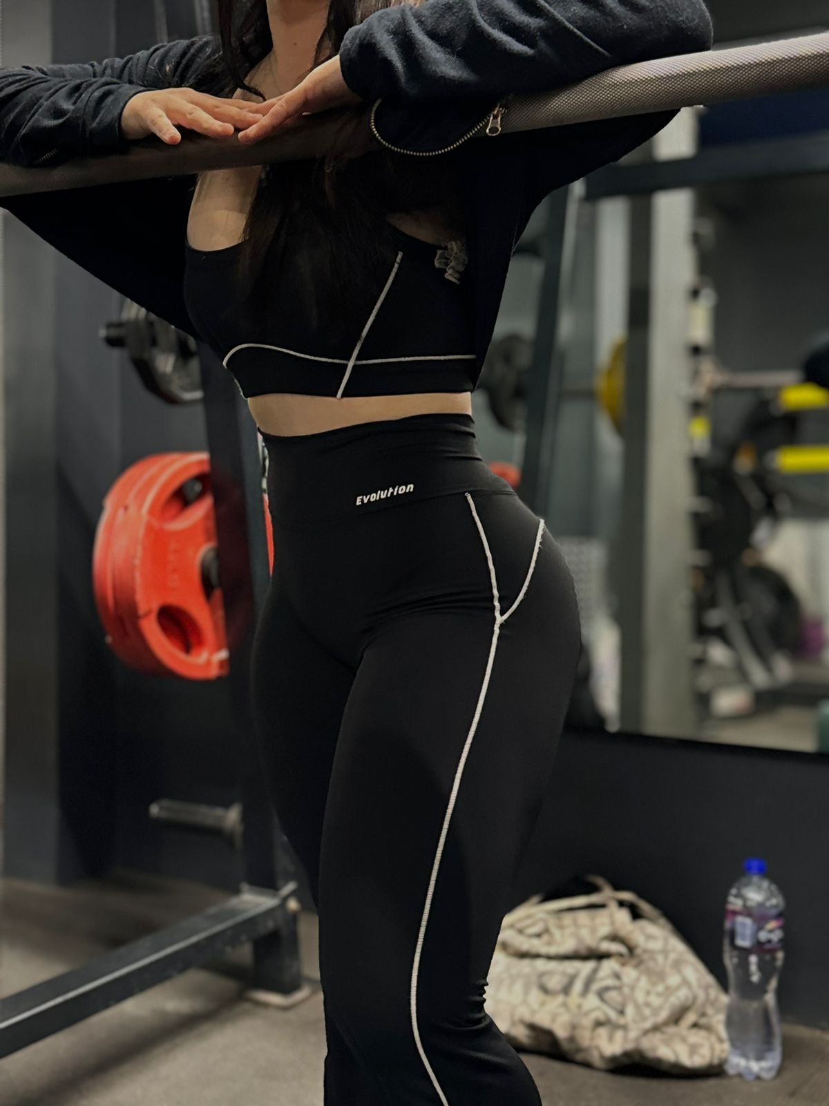 El Set Gio es perfecto para realzar tus curvas y alargar tus piernas gracias a su silueta de pierna acampanada y ribetes en contraste. Fabricado con tela suave y sedosa, te brinda comodidad y soporte durante el ejercicio o para un look casual. Con escote redondo, almohadillas extraíbles y pretina alta, este set combina estilo y comodidad.